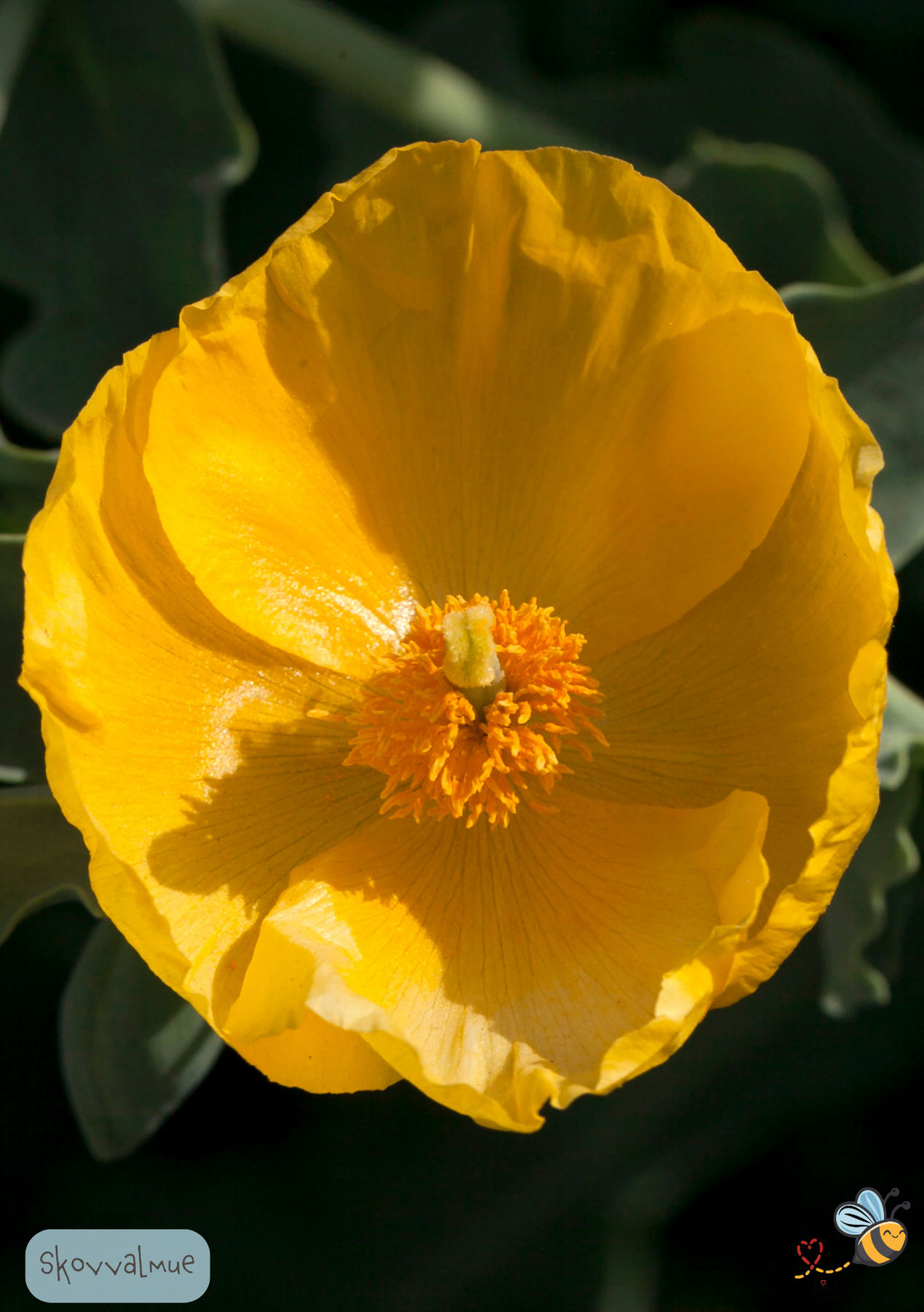 Basal roset af lysegrønt, fint fliget løv og slanke stængler på 40–60 cm. Enkle blomster på 4–5 cm i gul til orange åbner i sol og dannes løbende. Trives i halvskygge–skygge, gerne køligt læ, på fugtig men veldrænet, gerne kalkholdig jord; tåler kort tørke, hvis rødderne står dybt i let jord.