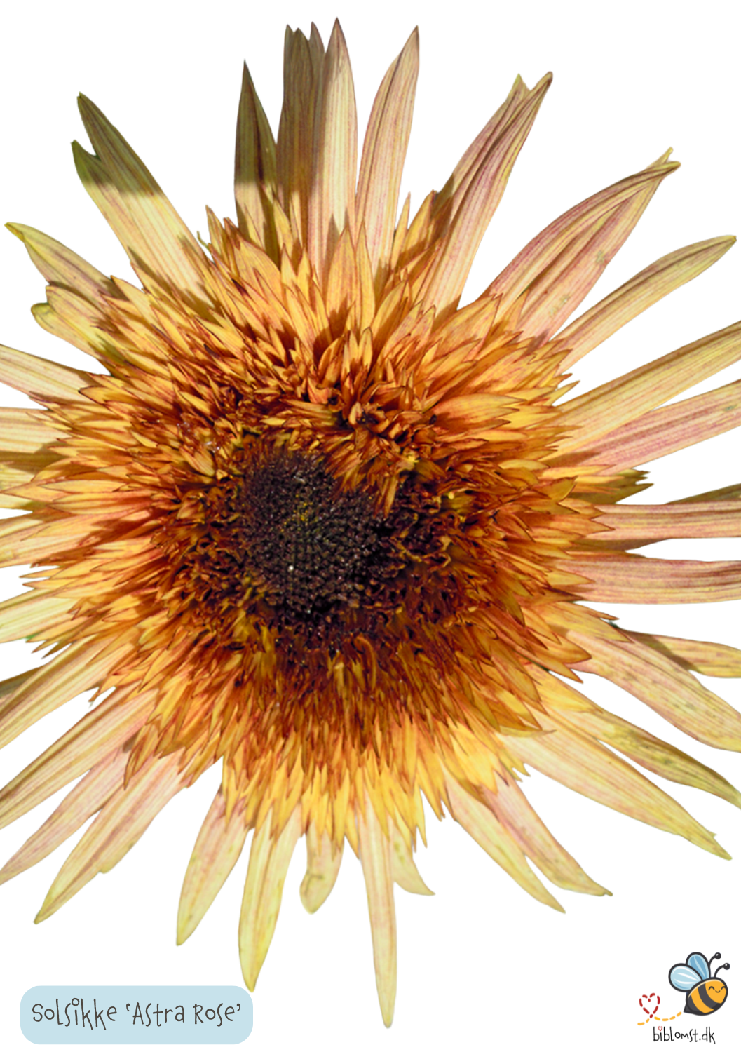 Solsikke (Helianthus annuus) er en ikonisk plante, der stammer fra Nordamerika, hvor den har været dyrket i årtusinder. Sorten 'Astra Rose' er en moderne forædlet variant, der skiller sig ud med sine unikke rosa og lyserøde nuancer, som adskiller sig fra de traditionelle gule solsikker. Denne sort er blevet populær for sit usædvanlige og romantiske udseende, der tilfører haven et blødt, farverigt præg.