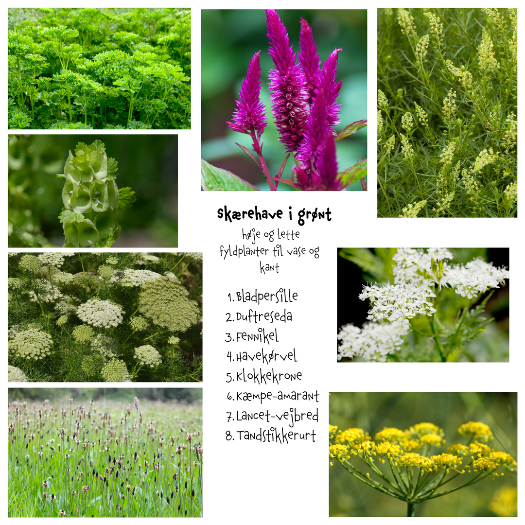 Skærehave i grønt - høje og lette fyldplanter til vase og kant