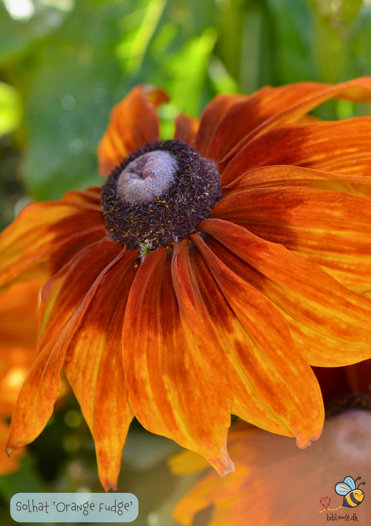 Solhat (Rudbeckia hirta) er hjemmehørende i Nordamerika, hvor den trives på prærier og enge. Sorten 'Orange Fudge' er en forædlet variant, der er kendt for sin unikke farvekombination og kompakte vækst. Med dens rige nuancer af orange, brændt guld og mørk chokolade er 'Orange Fudge' en favorit blandt gartnere, der ønsker at tilføre varme og dramatik til haven.