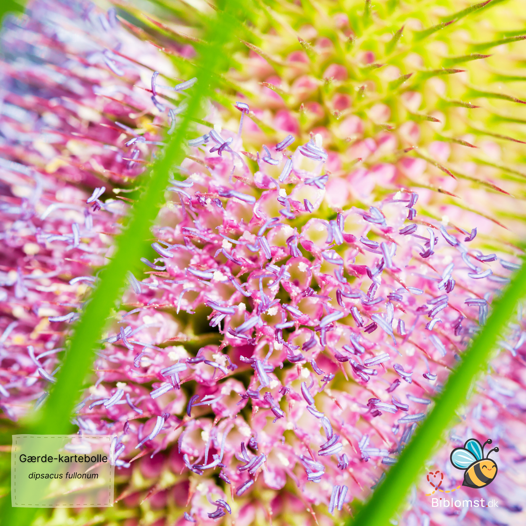 Gærdekartebolleen (Dipsacus fullonum) er en hjemmehørende dansk vildplante, der vokser langs grøftekanter, hegn og vejrabatter over det meste af landet. Den hører til de planter, som de fleste kender på udseende uden at vide navnet – og som fortjener en bevidst plads i haven. Denne bivenlige kæmpe af en toårig er et af de mest arkitektoniske blomsterfrø, du kan så.