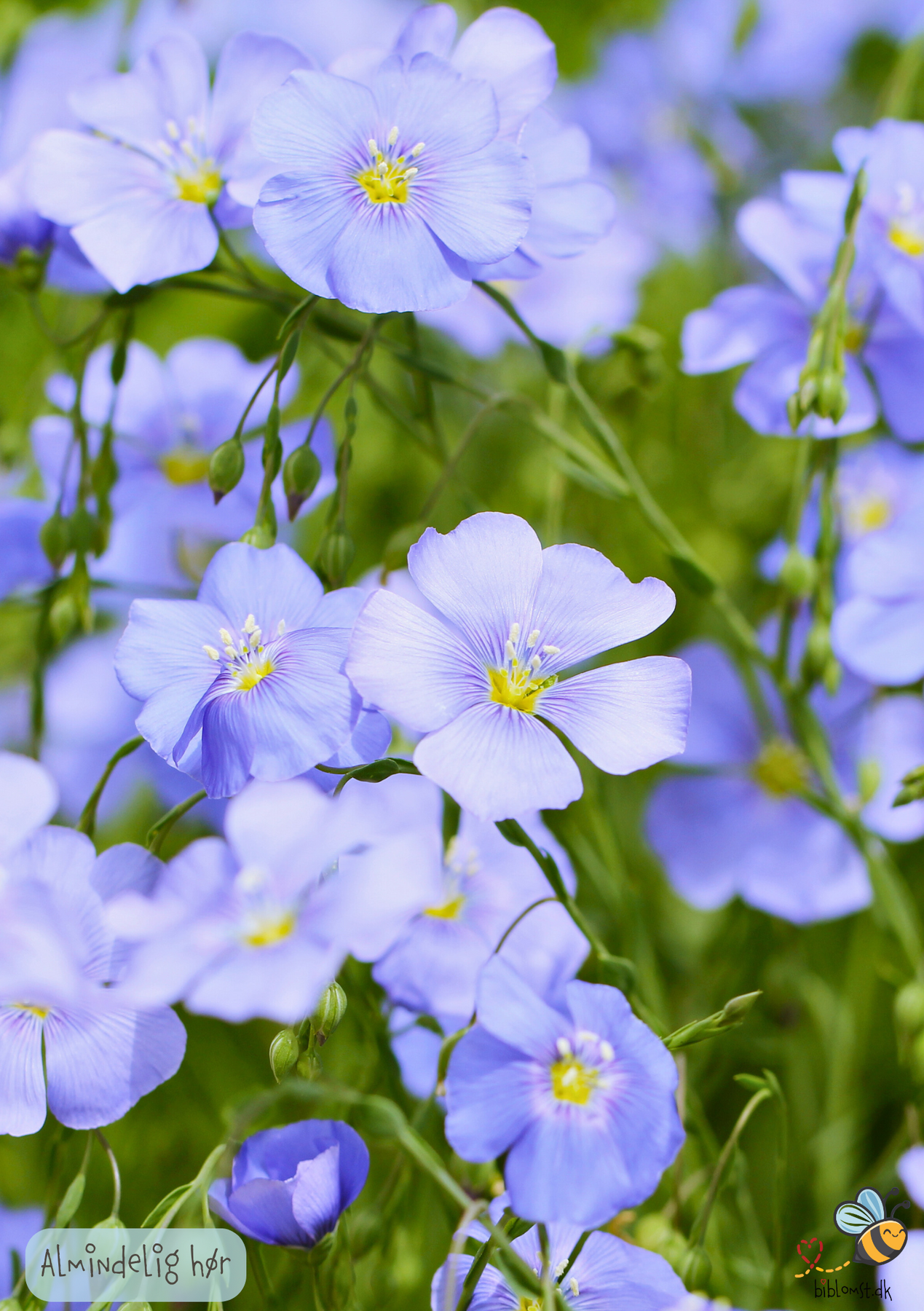 Almindelig hør, Linum usitatissimum, er en elegant etårig plante, der har været dyrket i årtusinder for sine fine, blå blomster, sine frø og sine fibre. Denne plante kombinerer skønhed og funktionalitet og er både en prydplante og en vigtig nytteplante. Med sine delikate blomster og sin historiske betydning er almindelig hør en fremragende tilføjelse til både naturhaver og blomsterbede.