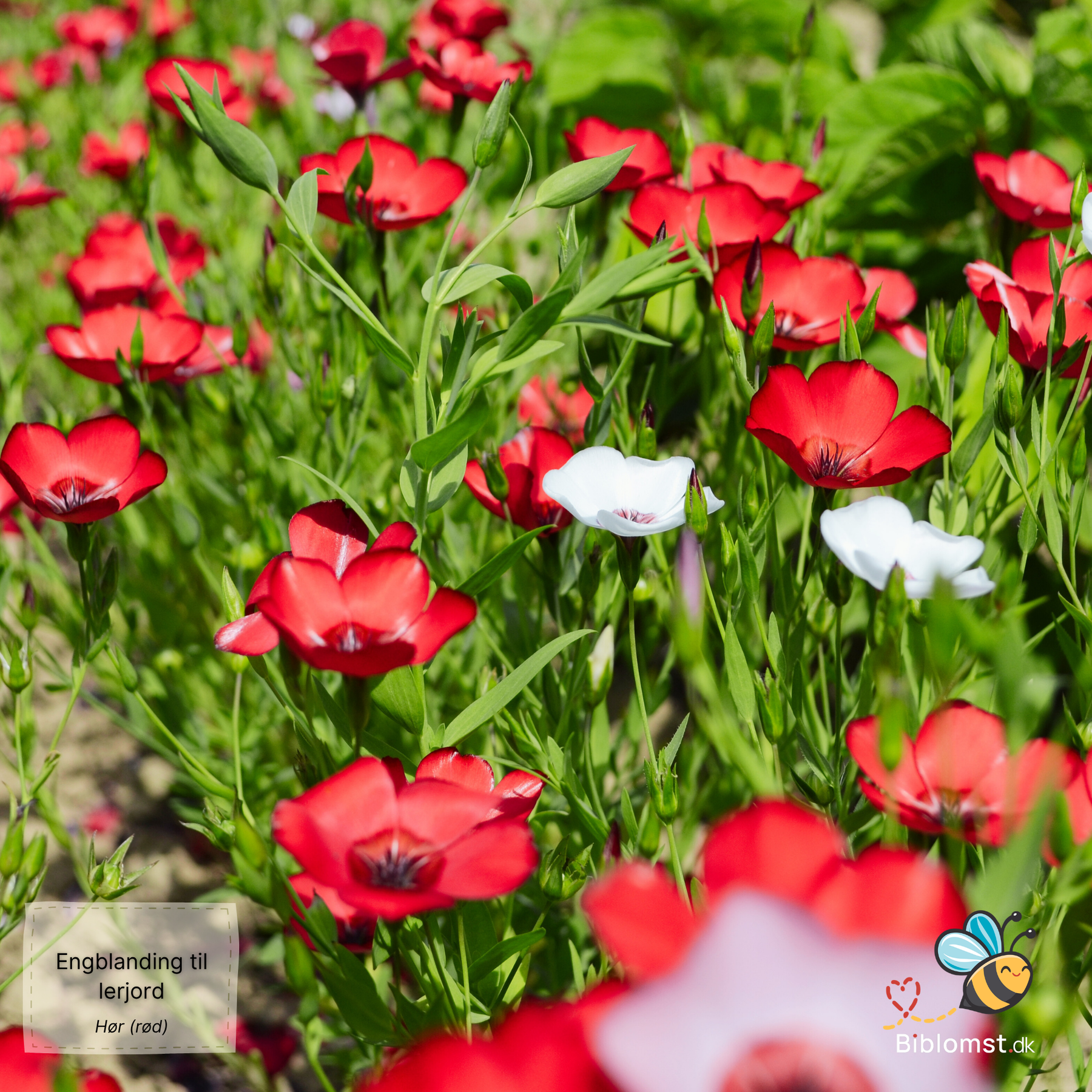 Biblomst Engblanding til lerjord er en frøblanding af 24 arter, der er udvalgt, fordi de trives på den tunge, fugtholdige jord, som mange danske haver byder på. De fleste engblandinger er sammensat til let, veldrænet sandjord – og det er grunden til, at så mange haveejere på Øerne og i Østjylland kæmper forgæves med deres blomstereng. Denne bivenlige blanding tager udgangspunkt i arter, der naturligt vokser på fugtige enge, leret overdrev og næringsrig bund: engknellikerod, lægekvæsurt, blåhat, moskuskatost og hvid oksøeje – alle planter, der trives, hvor andre får våde fødder.