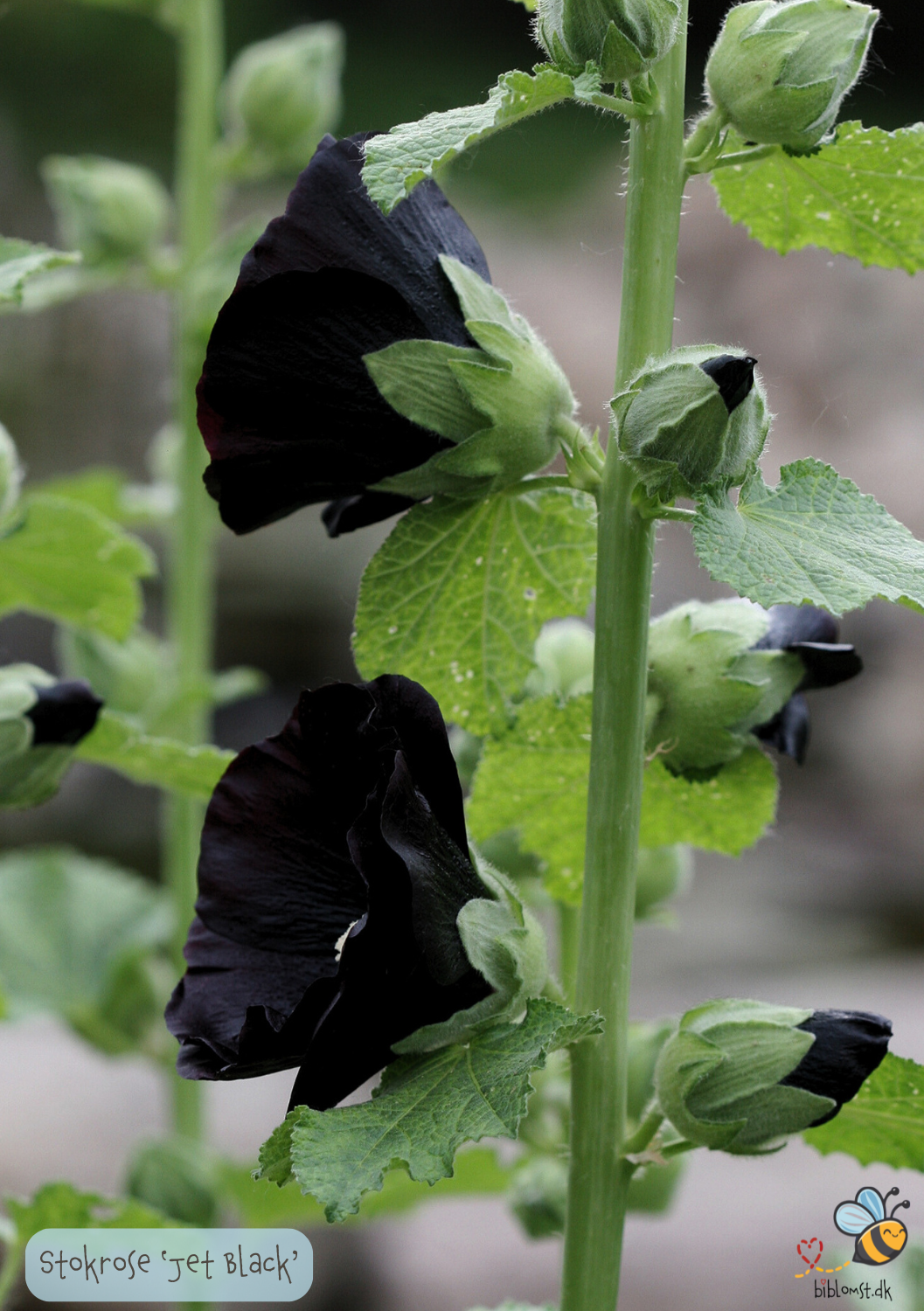 Stokrosen (Alcea rosea) er en klassisk plante, der oprindeligt stammer fra områder i Asien og blev introduceret til Europa i middelalderen. Sorten 'Jet Black' er en dramatisk og iøjnefaldende variant, kendt for sine dybt mørkelilla blomster, der næsten fremstår sorte under visse lysforhold. Denne sort er populær i både traditionelle og moderne haver for sit unikke udseende og dens evne til at skabe kontrast og elegance.